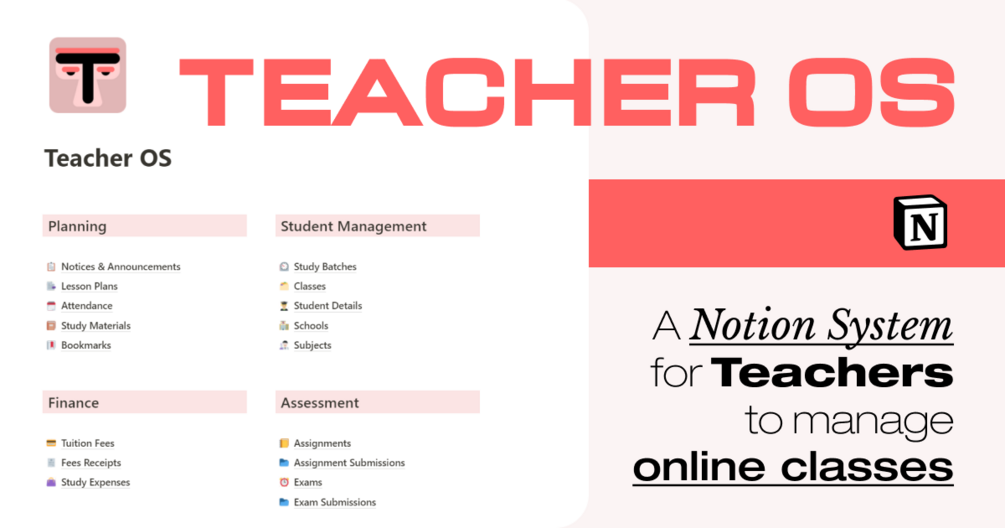 Teacher OS - Notion Template for teachers | notion template for Schools, Classrooms, Tuition and Teaching Institutes | Notion template for teachers and professors